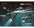 Linterna táctica multipropósito de 3000 lúmenes, alcance máximo, alcance máximo 475 metros, seis alternativas de iluminación incluyendo Luz estroboscópica. Duradera, resistente a los impactos, polvo e impermeable (IP68).