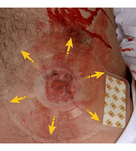 Parche para heridas abiertas en el tórax, hidrogel ventilado laminar, diseñado para evitar la entrada de aire en una herida abierta y permite&...